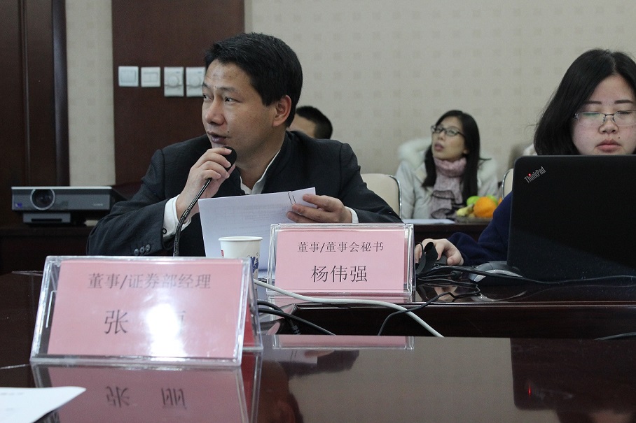 (圖為董事會(huì)秘書楊偉強(qiáng)主持會(huì)議)