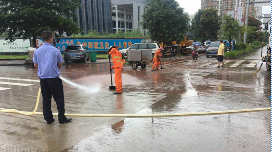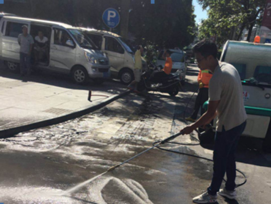 ▲對(duì)重點(diǎn)交易市場(chǎng)、政府廣場(chǎng)周邊清洗作業(yè)
