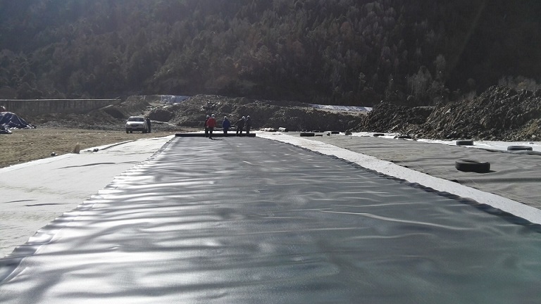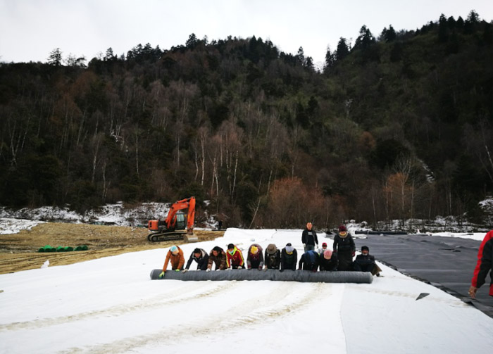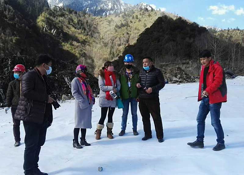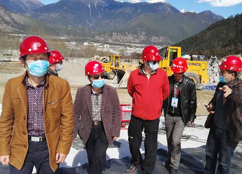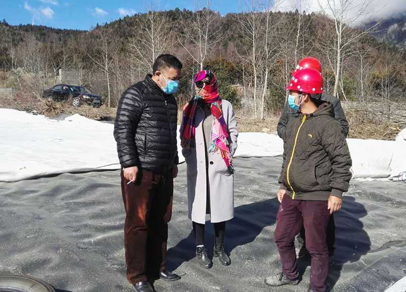 林芝市市政局副局長亞宏來工地查看土工膜鋪設(shè)焊接