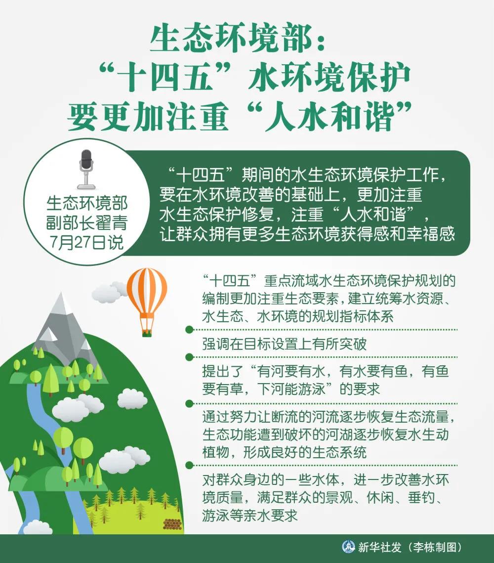 生態(tài)環(huán)境部副部長翟青27日說,“十四五”期間的水生態(tài)環(huán)境保護(hù)工作,要在水環(huán)境改善的基礎(chǔ)上,更加注重水生態(tài)保護(hù)修復(fù),注重“人水和諧”,讓群眾擁有更多生態(tài)環(huán)境獲得感和幸福感。