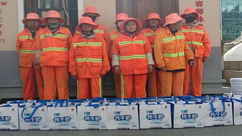 為感謝他們多年來的辛勤付出,國策環(huán)保林芝分公司相關(guān)人員向作業(yè)在一線的環(huán)衛(wèi)工人以每人80元的標(biāo)準(zhǔn),發(fā)放了當(dāng)?shù)靥禺a(chǎn)雪頓純牛奶、嘎瑪雞蛋、鹽等慰問品,共計274份。