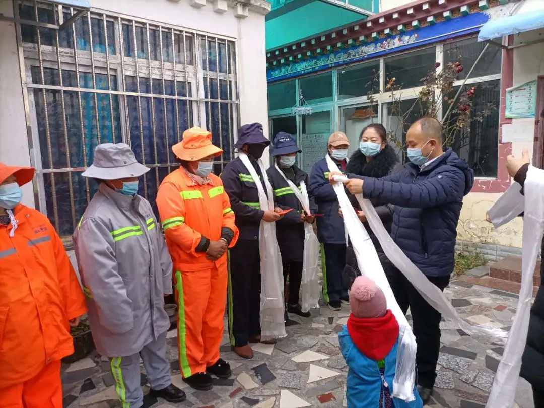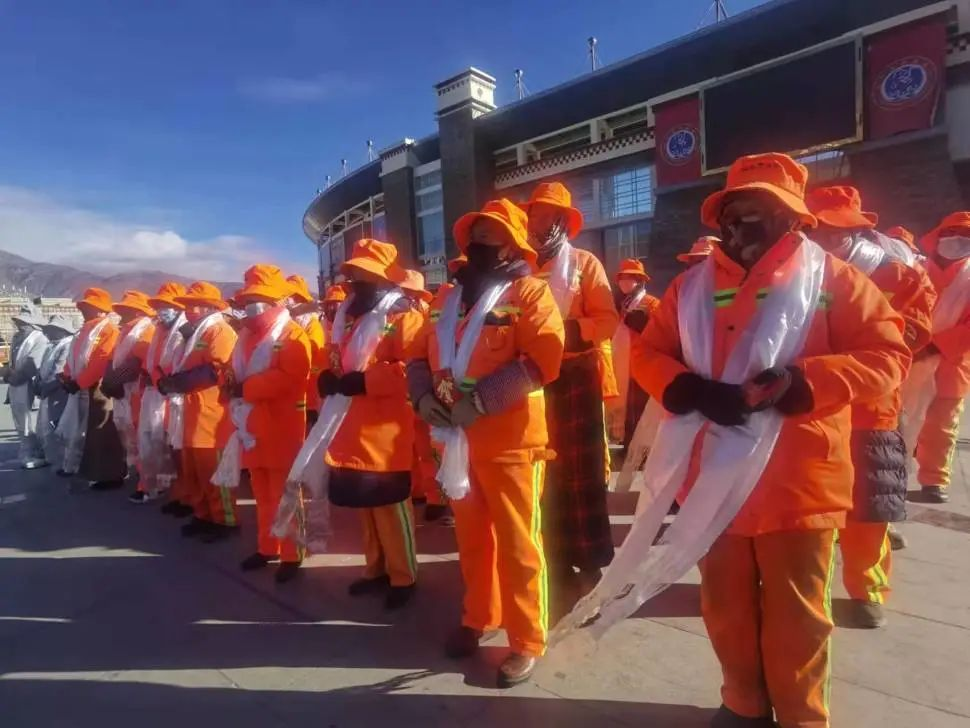 1月7日,為表達對國策一線環(huán)衛(wèi)工人的關(guān)懷和祝福,林芝市慈善總會在工布公園工布廣場開展了“寒冬送溫暖 致敬城市美容師”送冬衣活動。活動現(xiàn)場,市慈善總會工作人員為50名環(huán)衛(wèi)工人敬獻哈達,并送上慰問冬衣。