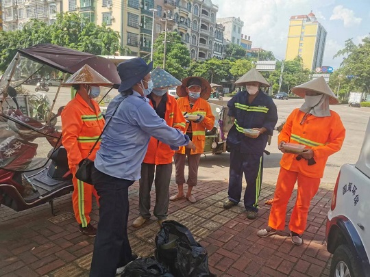 這不,國(guó)策環(huán)保東興子公司再次為五百余名環(huán)衛(wèi)工人送去消暑用品,積極做好一線環(huán)衛(wèi)工人的身心關(guān)懷及防暑降溫工作。